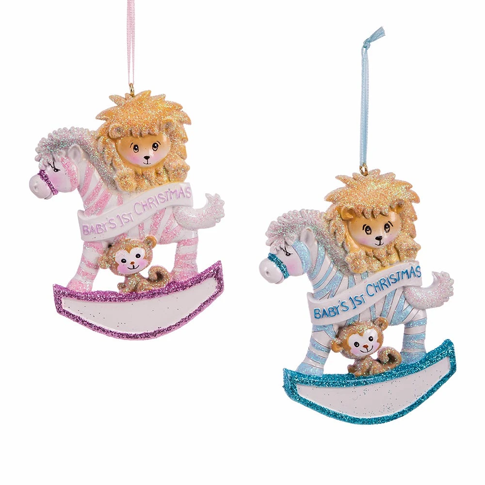 Baby’s 1st Christmas Snowman Rocking Zebra Ornaments For Personalization, 2 Assorted