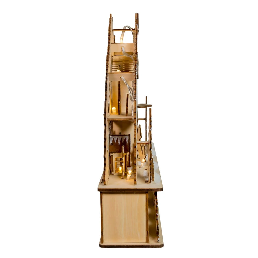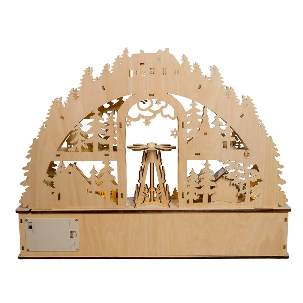 - Made of wood composite, metal, plastic and copper