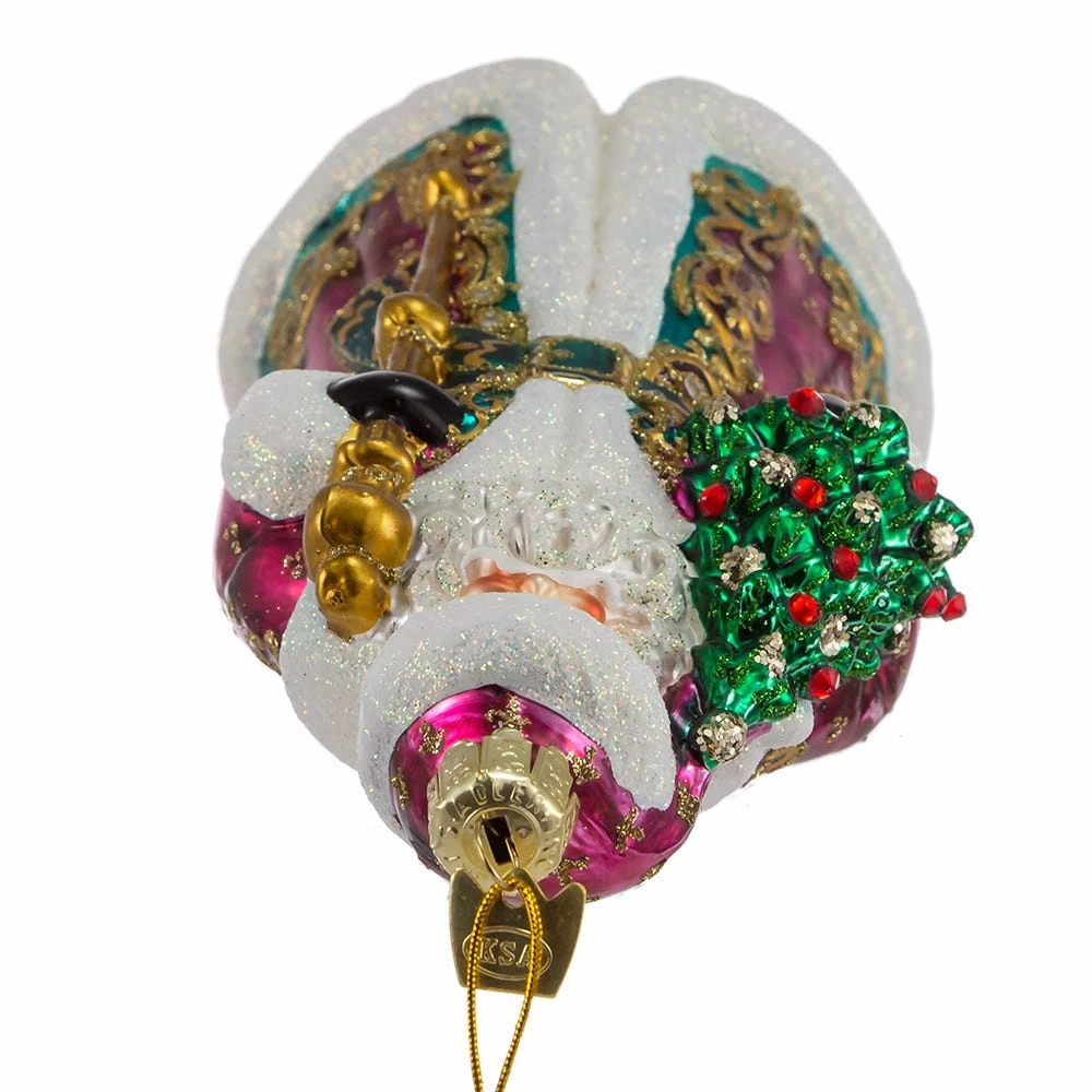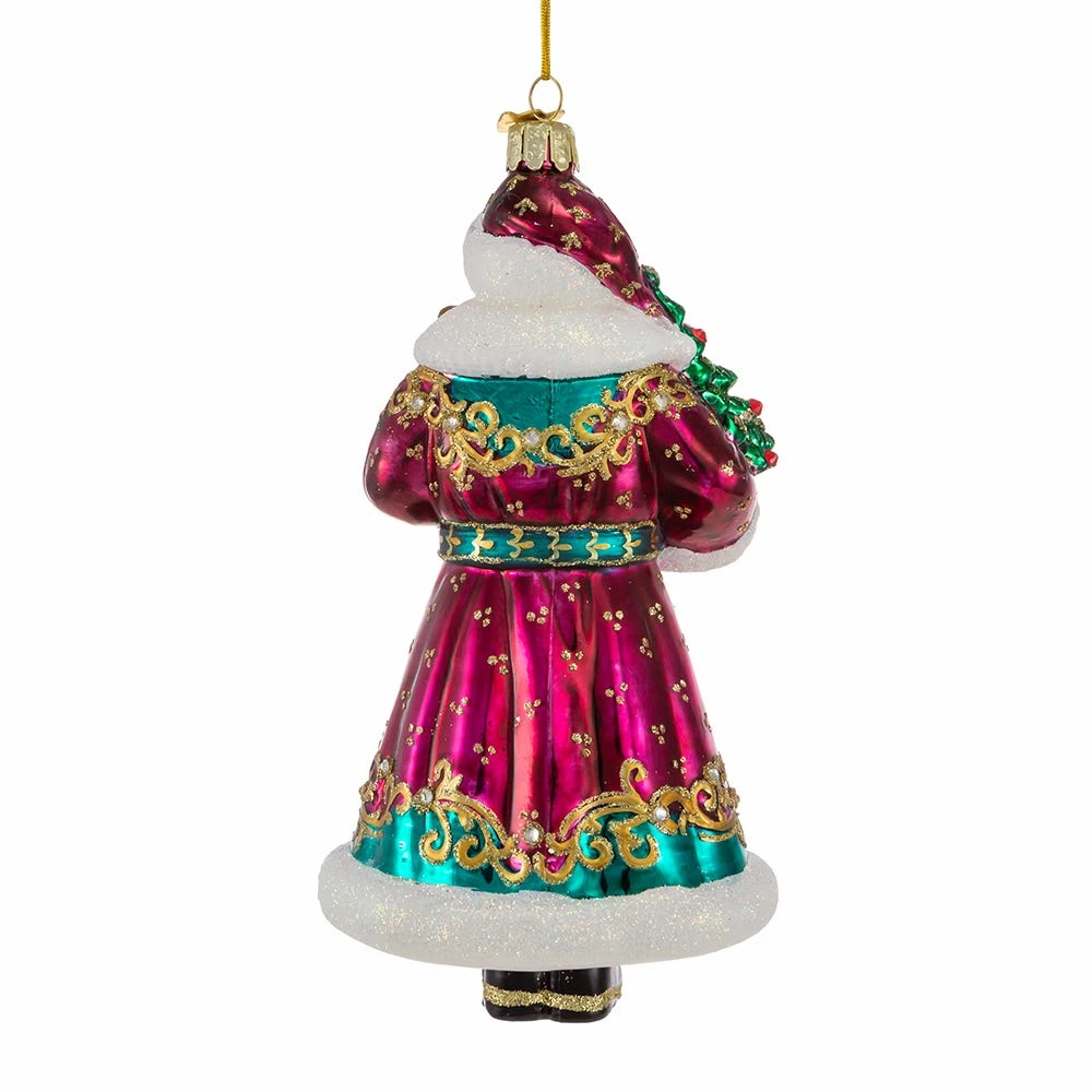 Bellissimo Glass Santa With Christmas Tree And Staff Ornament