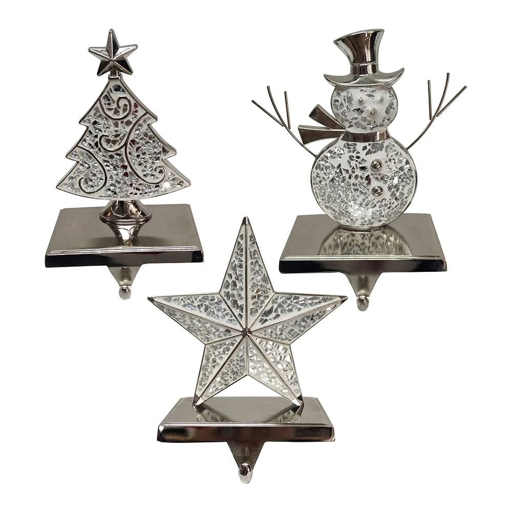 Silver Metal Christmas Stocking Hangers, 3 Assorted